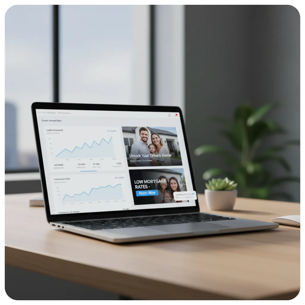 We craft data-driven ad campaigns and visuals that grab attention and attract serious homebuyer and refinance leads.